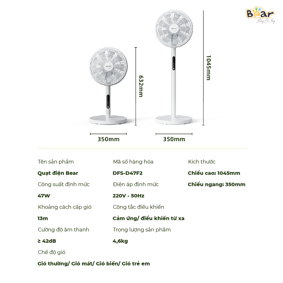 Xem thêm: Quạt Bear chính hãng phổ biến nhất