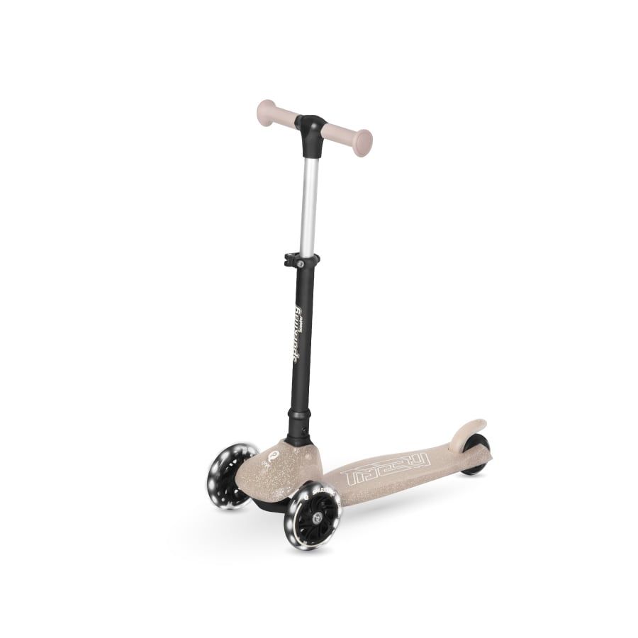• Bề mặt sàn scooter chống trượt: Lớp kim tuyến không chỉ để đẹp mà còn giúp tăng độ ma sát, giữ chân bé bám chắc dù bé chạy nhanh.