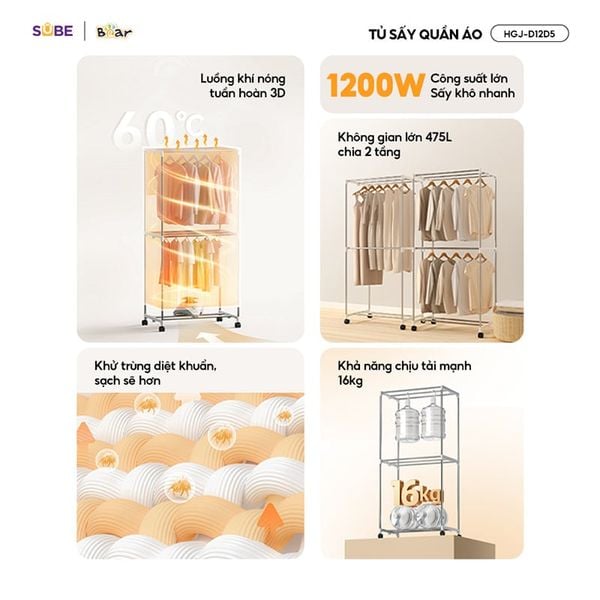 - Tên sản phẩm: Tủ sấy quần áo Bear HGJ-D12D5