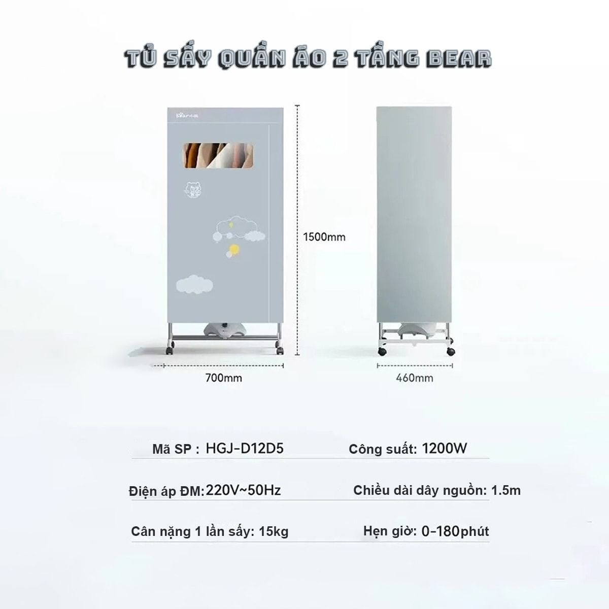 Thông Số Kỹ Thuật Tủ Sấy Quần Áo Bear HGJ-D12D5